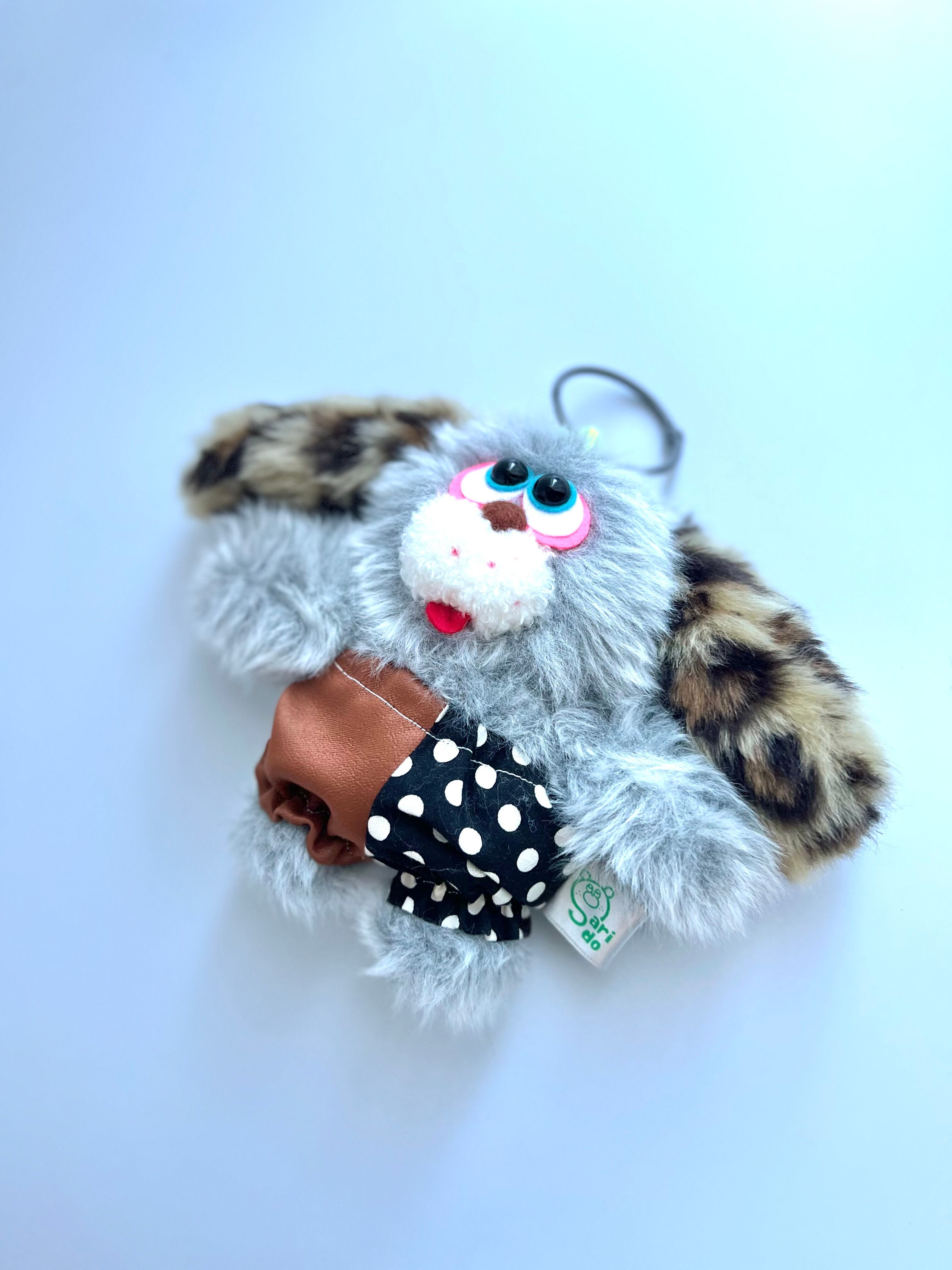 mofu-lulu チャームいぬ Tsumire(ツミレ) モフモフでポップな犬のぬいぐるみチャーム 秋 Autumn グレー アニマル レオパード おでん ふわふわ バッグチャーム | Sari堂(sarido)