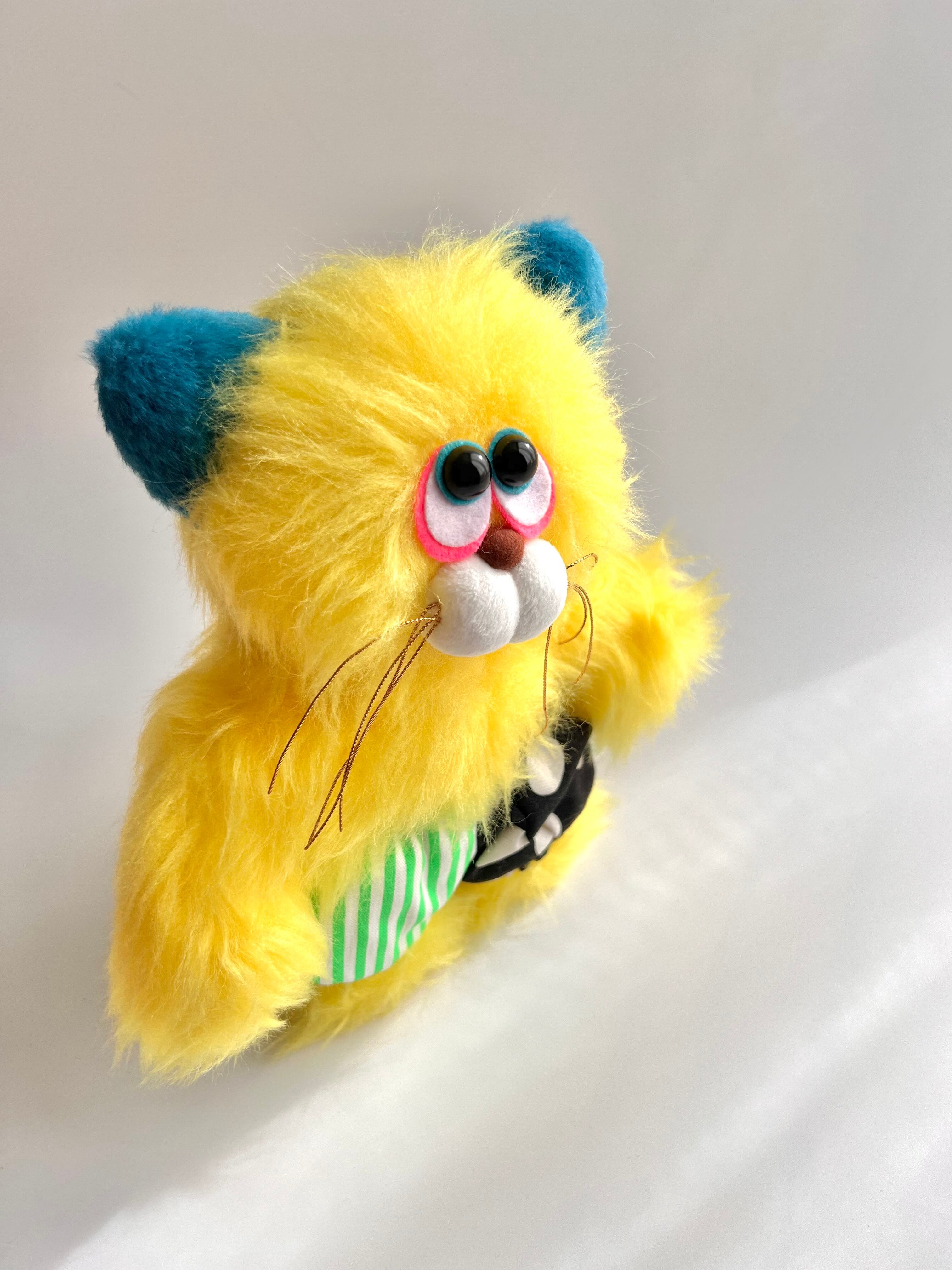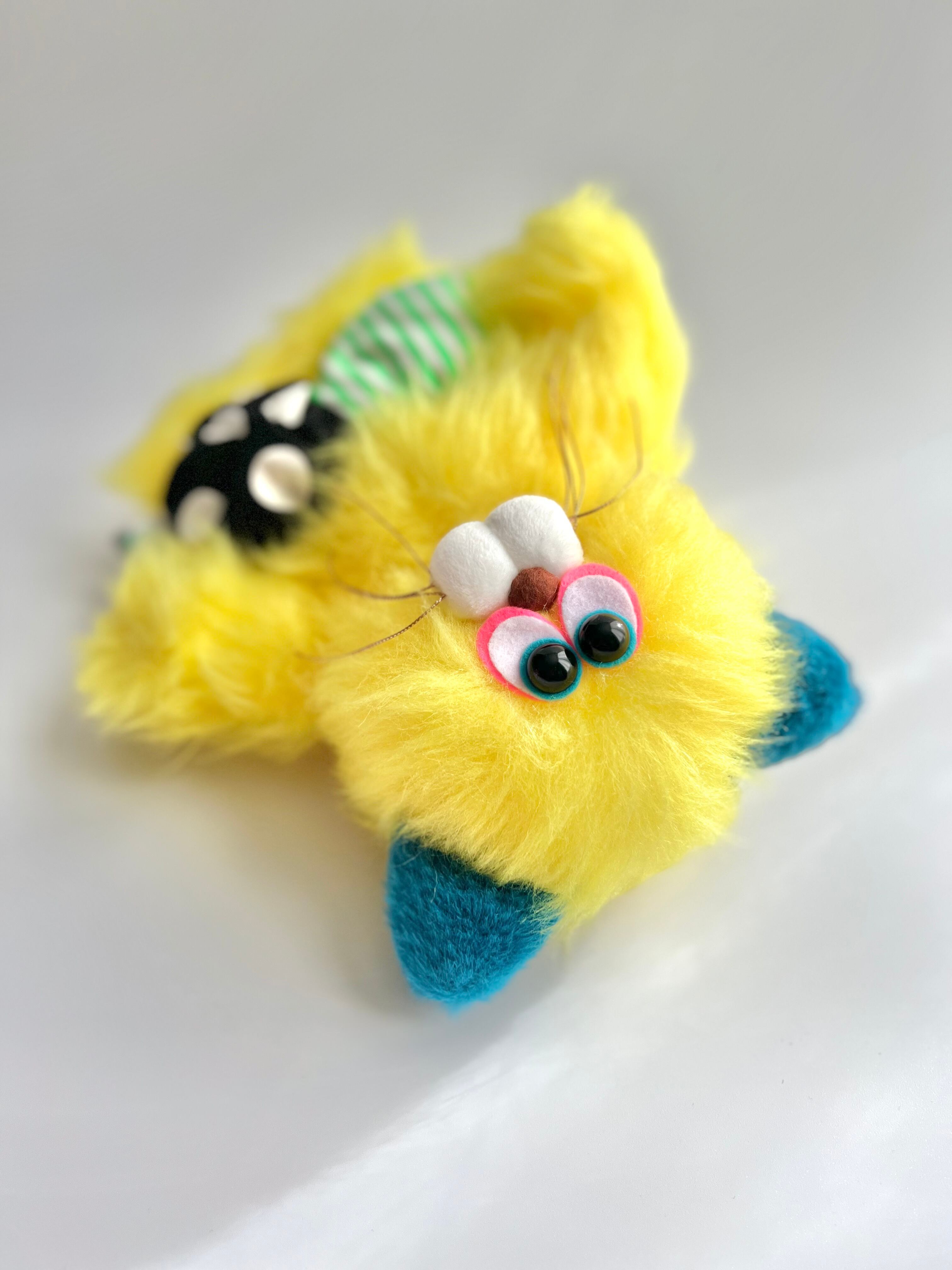 パッと目を惹くふわふわイエローのロングファーで作りました。