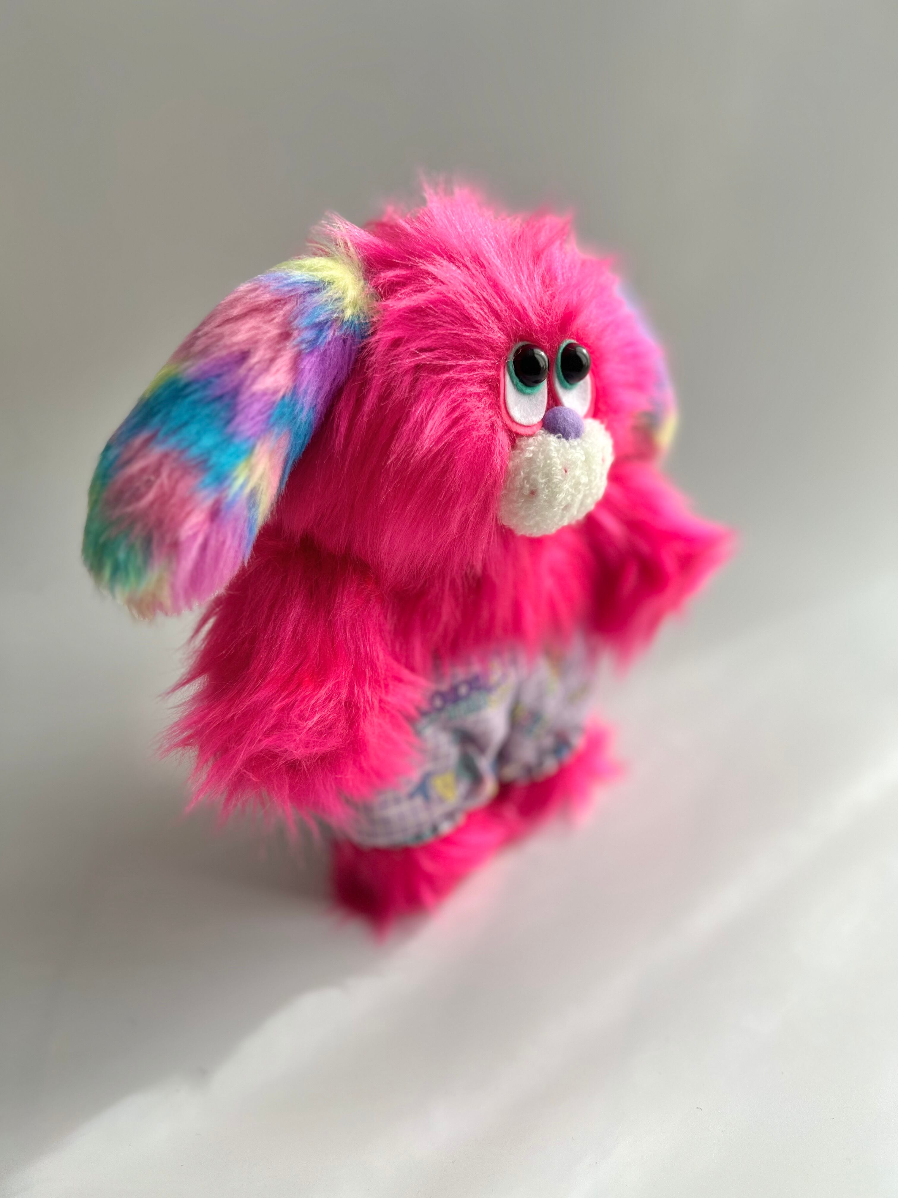 ハワイ語で「虹」を意味するその名の通り、カラフルなレインボーカラーの垂れ耳がと鮮やかなピンクのボディが唯一無二のわんこです。